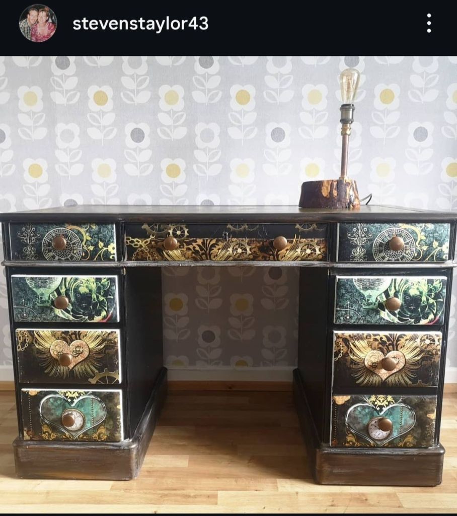 I didnt paint a picture again until about 6 or 8 years ago, in my early 50’s but first I began by painting and decoupaging furniture.